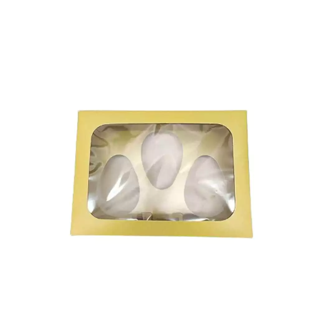Caixa para ovos de Páscoa de colher, comportando 3 ovos de 100/150g.