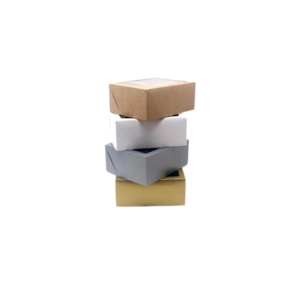 Cores disponíveis para tampa: Kraft, branca, ouro, prata, preto e vermelho.